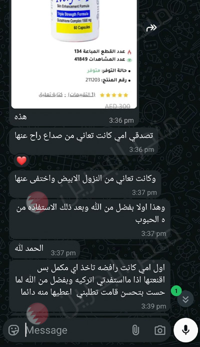 تنصح الشركة المصنعة باستخدام فيتامين سي و كريم التفتيح من نفس الشركة (متوفرة في المتجر)